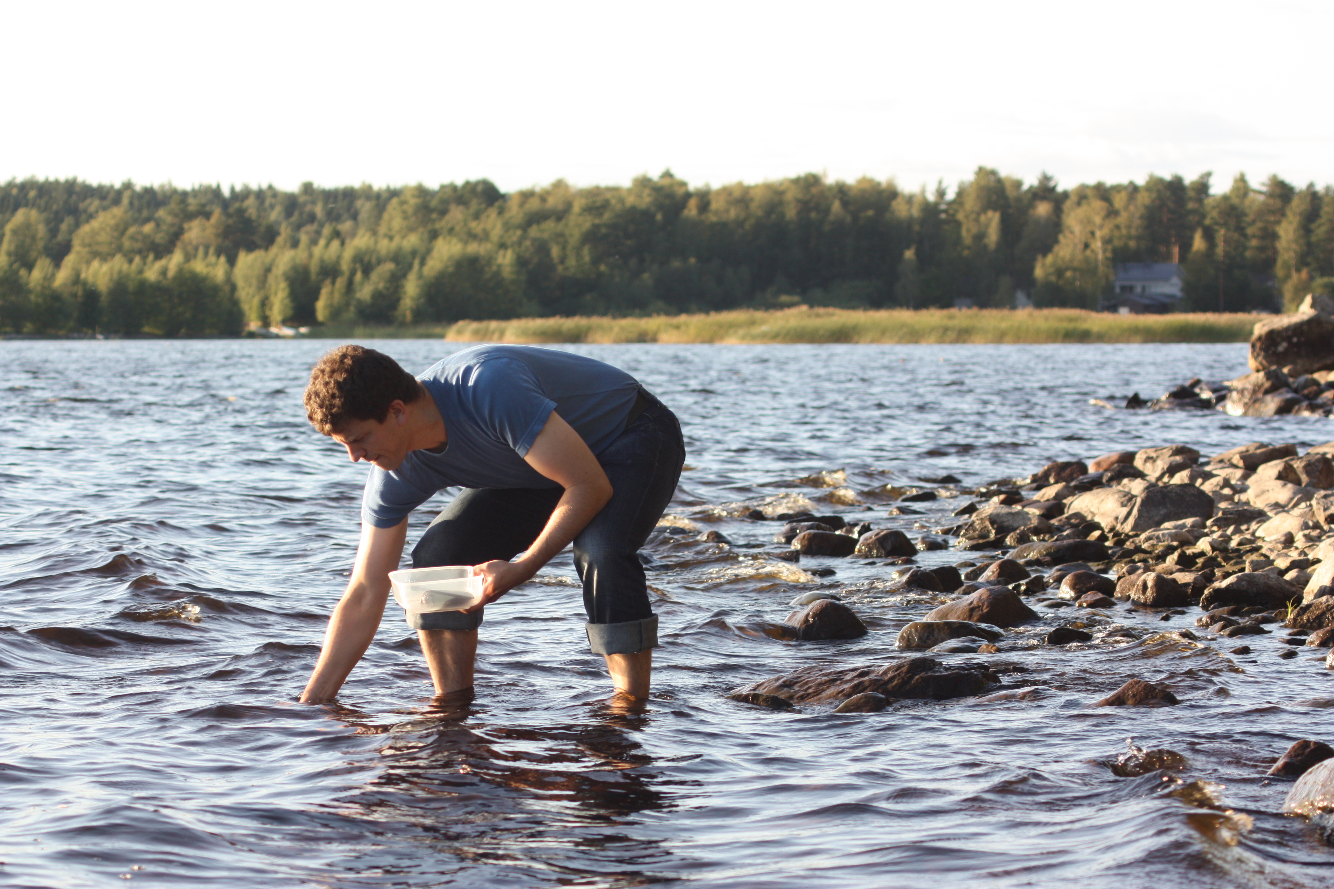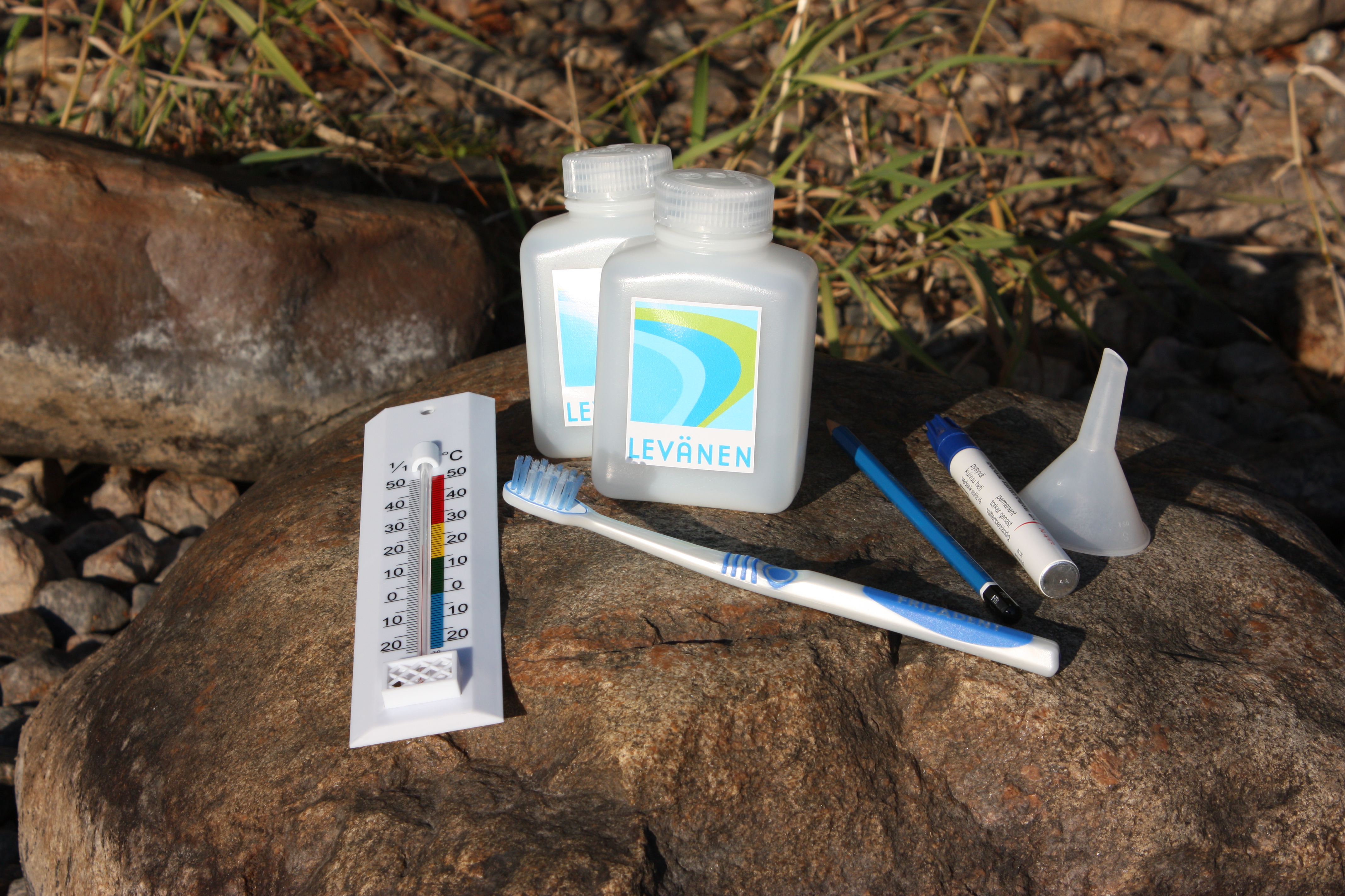Bildmaterial zu den verschiedenen Phasen der Probennahme beim Levänen-Gewässerpass.